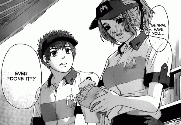 I would enjoy Oonuma’s part of the story considerably more if the author explored her anxiety instead of only pushing her sexuality. She has taken her friend’s advice to heart, and is actually following through by trying to use her body to her advantage, but she still seems reserved and conflicted about doing so. While ecchi and fanservice have their place in this kind of story, I hope to see them complemented by character analysis.