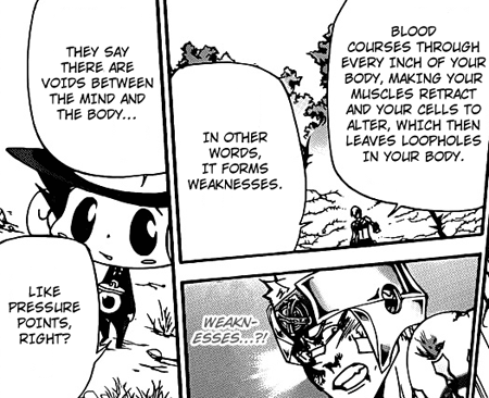 Obviously, Ryohei has to wait a certain amount of time and/or take a certain amount of damage before revealing his full power. That works in video games, but it alone doesn’t generate interesting fights in manga.