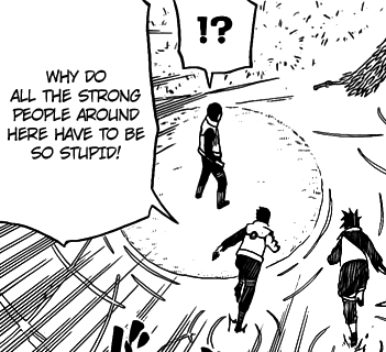 I would have much preferred to infer Naruto’s stupidity, rather than to be explicitly reminded of how stupid he was through cheesy internal monologue. In fact, there have far too many internal thought bubbles in Naruto recently. That’s a terrible storytelling crutch on which to rely, akin to Togashi’s excessive use of narrative boxes.