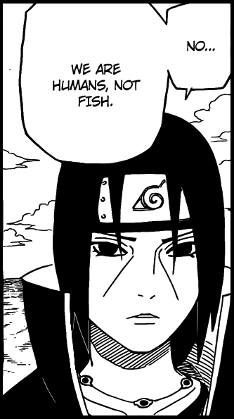 Interesting conversation between Itachi and Kisame. There are a couple of odd moments, but overall, it’s a nice look at what was hinted at being a curious relationship.