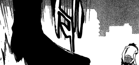 Still more bickering between Yoruichi and Kisuke. Kubo’s even sunk so low as to use polka-dot screentone for a comedy background… in the middle of a climactic fight against the strongest enemy they’ve ever encountered. This isn’t even writing anymore.