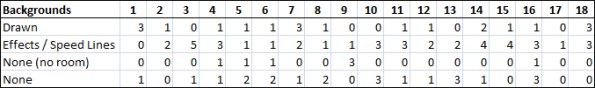 To illustrate my point about the backgrounds, I’ve taken the time to examine the background of every panel in this chapter: