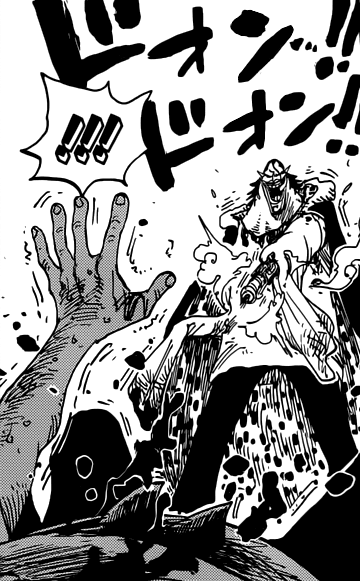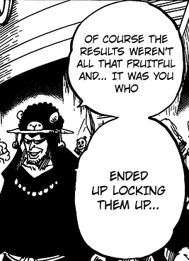 Even more focus on the duality of Kuma, as again highlighted here by Shakky mentioning the earlier meeting between the still-human Kuma and Rayleigh. With this much focus on Kuma, a revelation must be forthcoming fairly soon.