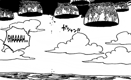 Rayleigh’s brief flashback reveals a pretty major piece of information: Luffy’s straw hat was originally Roger’s. On one hand, this is a nice little tie-in meant to make Luffy feel even more important and destined for greatness than he already did. On the other hand, I don’t want any Luffy/Roger similarities becoming reminiscent of the endless string of Vongola Primo tripe in Reborn. Compare your protagonist too often to a famed character in the past, and nothing your protagonist does will create any sense of achievement.