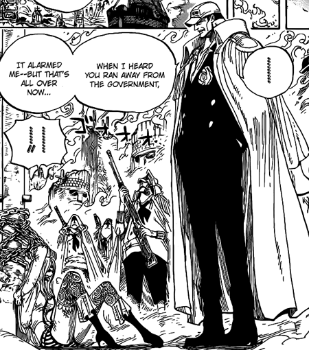 Akainu is speaking to Bonney in a very familiar manner. He could just be familiar with her, but his relief at finding her is interesting. Could he be something more than an acquaintance?