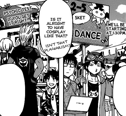 Shonen Jump references! Nice to see some appreciation for some other great series, especially Sket Dance, which (I am obligated to remind the internet) desperately needs translators to bring the series up to date. It is hilarious and well worth the time.