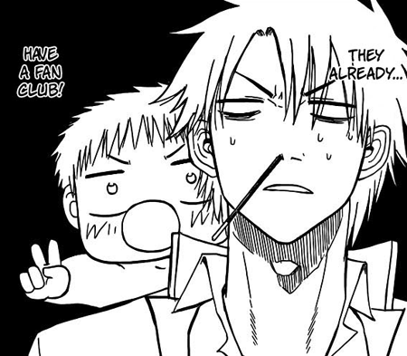 He has a fan club, too! This is great stuff. Also, Oga should really teach Beel the proper way to eat Pocky.